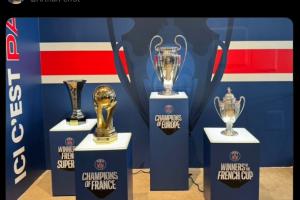 赛后RMC记者ArthurPerrot更新社媒,晒出巴黎本赛季四座冠军奖杯照片。
